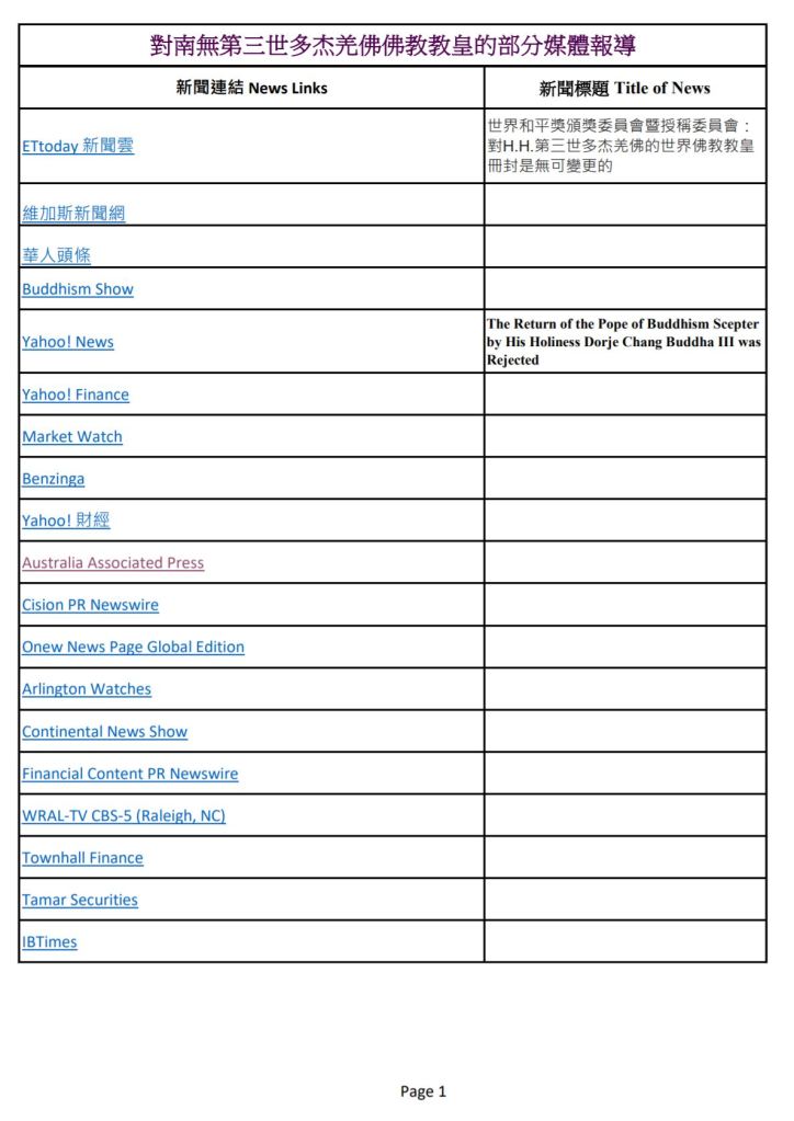附件4. Yahoo News 雅虎新聞_The Return of the Pope of Buddhism Scepter by His Holiness Dorje Chang Buddha III was Rejected_9-27-2020附件 5. 對南無第三世多杰羌佛佛教教皇的部分媒體報導 Some of the News Media Coverage on the Pope of Buddhism His Holiness Dorje Chang Buddha III